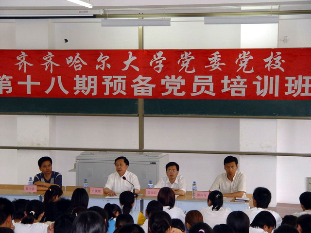 6月7日,我校黨委黨校舉辦了第十八期預(yù)備黨員培訓(xùn)班。 培訓(xùn)班開(kāi)學(xué)式在11教階梯201教室舉行,開(kāi)學(xué)式由黨委組織部部長(zhǎng)、黨委黨校常務(wù)副校長(zhǎng)蓋元臣同志主持,大學(xué)黨委副書(shū)記、黨委黨校校長(zhǎng)史鐵成同志出席培訓(xùn)班開(kāi)學(xué)式并作了動(dòng)員講話。他在動(dòng)員講話中強(qiáng)調(diào)三點(diǎn):一是明確培訓(xùn)目的,端正學(xué)習(xí)態(tài)度,增強(qiáng)學(xué)習(xí)的自覺(jué)性。二是要深入系統(tǒng)學(xué)習(xí)《黨章》,增強(qiáng)先進(jìn)意識(shí),以實(shí)際行動(dòng)加強(qiáng)先進(jìn)性建設(shè)。三是要進(jìn)一步增強(qiáng)先鋒意識(shí),在學(xué)校改革、發(fā)展、創(chuàng)新中發(fā)揮黨員的先鋒模范作用。