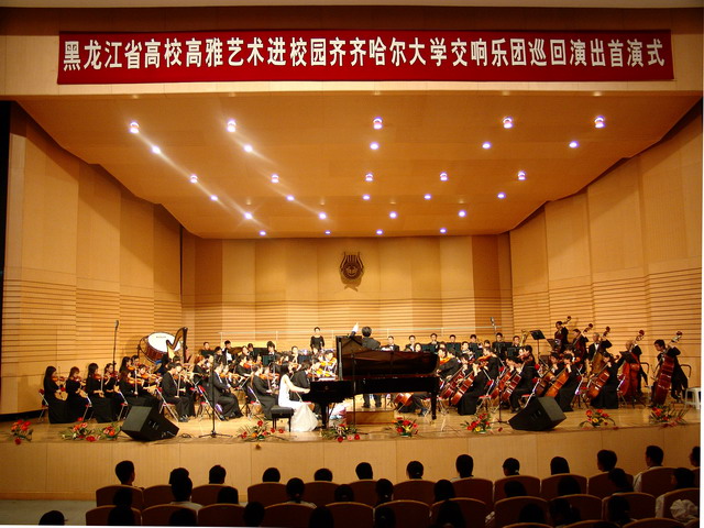 據(jù)了解,從2005年開始,教育部決定每年在全國(guó)普通高校開展主題性的高雅藝術(shù)進(jìn)校園活動(dòng)。2006年高雅藝術(shù)進(jìn)高校以“走進(jìn)大師、聆聽經(jīng)典、陶冶情操、提高素養(yǎng)”為主題,以交響音樂為載體,目的在于進(jìn)一步推進(jìn)高校高雅藝術(shù)的普及工作,促進(jìn)當(dāng)代青年向真、向善、向美,得到全面和諧的發(fā)展。教育部將組織一批交響樂團(tuán)在22個(gè)省的高校做230場(chǎng)巡回演出,我校交響樂團(tuán)被教育部指定為黑龍江省的唯一巡回演出單位,將于本月15日起程赴哈爾濱、大慶、佳木斯等地的10所高校進(jìn)行巡回演出和講解,使更多的大學(xué)生接受高雅藝術(shù)的熏陶。