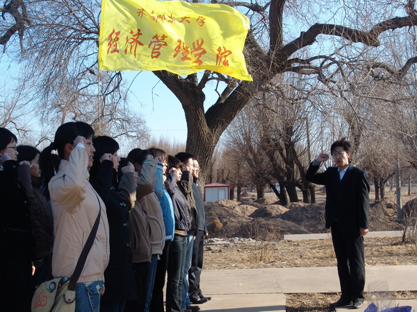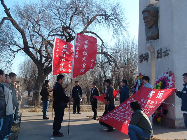 4月5日,清明節(jié)的當(dāng)日早晨。我校經(jīng)濟(jì)管理學(xué)院、人文學(xué)院、應(yīng)用技術(shù)學(xué)院、齊大青年報(bào)等單位青年學(xué)生在黨團(tuán)組織的帶領(lǐng)下,有秩序地到和平廣場和沙濤革命烈士紀(jì)念碑祭奠掃墓,并分別舉行了莊嚴(yán)的入黨宣誓儀式。