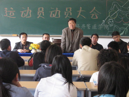 經(jīng)濟(jì)管理學(xué)院4月27日召開了全體運動員動員大會,學(xué)院黨委書記李玉山、副書記副院長鄒立堂、輔導(dǎo)員馬曉華出席了動員會。李玉山回顧了經(jīng)管學(xué)院在學(xué)校歷次運動會上取得的優(yōu)異成績,勉勵運動員發(fā)揚成績,克服困難,團(tuán)結(jié)協(xié)作,再創(chuàng)佳績。鄒立堂對全體運動員提出了希望和要求,叮囑運動員處理好學(xué)習(xí)和訓(xùn)練的關(guān)系,做到學(xué)習(xí)訓(xùn)練兩不誤。運動員們信心倍增,決心在運動會中再展經(jīng)管學(xué)院的風(fēng)采,為學(xué)院爭光。