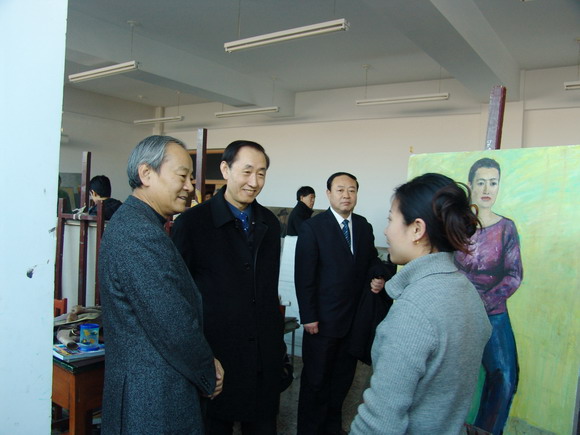 杜鈺洲會(huì)長(zhǎng)等一行參觀了我校靚麗的校園景觀,考察了我校體育館、游泳館、美術(shù)館、音樂廳及藝術(shù)學(xué)院等有關(guān)教育教學(xué)設(shè)施,參觀了我校美術(shù)館正在展出的畫展。在藝術(shù)學(xué)院美術(shù)專業(yè)畫室,杜會(huì)長(zhǎng)親切地與正在進(jìn)行繪畫創(chuàng)作的師生圍繞著繪畫創(chuàng)作的有關(guān)話題進(jìn)行了友好地交流。