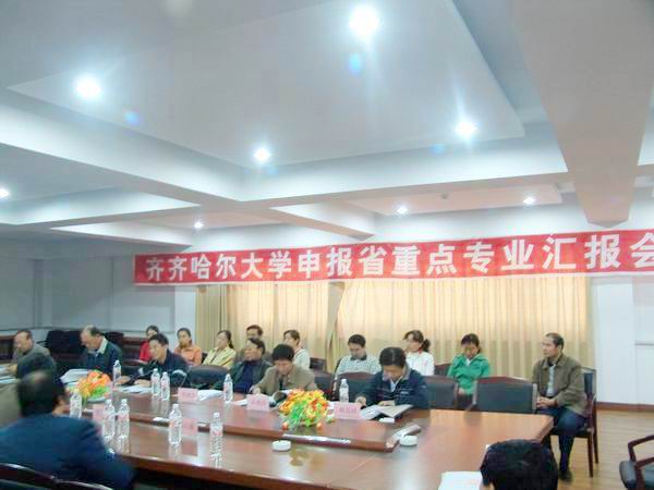 10月9日下午,由省教育廳高教處徐穎琪和哈爾濱醫(yī)科大學(xué)沃震中教授等6名專(zhuān)家組成的省教育廳重點(diǎn)專(zhuān)業(yè)建設(shè)專(zhuān)家調(diào)研組蒞臨我校指導(dǎo)工作,校長(zhǎng)唱江華、副校長(zhǎng)姜守訓(xùn)、鄭喜群、鄧啟剛和有關(guān)部門(mén)負(fù)責(zé)人李英杰、高廣君、王云鵬、陳國(guó)良等出席匯報(bào)會(huì),我校申報(bào)省重點(diǎn)專(zhuān)業(yè)建設(shè)的相關(guān)學(xué)院負(fù)責(zé)人、專(zhuān)業(yè)帶頭人等參加了匯報(bào)會(huì)。