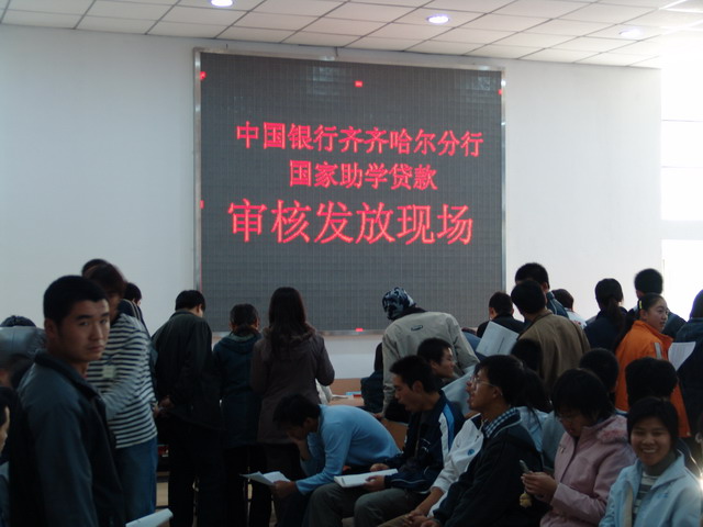 學(xué)校與經(jīng)辦銀行中國銀行齊齊哈分行積極協(xié)商,達(dá)成共識(shí):先處理和解決貧困學(xué)生貸款的實(shí)質(zhì)問題,目前暫時(shí)解決不了的有關(guān)問題,雙方積極努力,待時(shí)機(jī)成熟再酌情處理。按照原定貸款程序,從學(xué)生填寫申報(bào)材料、逐級(jí)審核到貸款進(jìn)戶需要三個(gè)多月的時(shí)間。銀校雙方為盡早把貸款發(fā)到學(xué)生手中,經(jīng)共同協(xié)商,除了必要的公示時(shí)間之外,一律壓縮工作周期,銀校雙方制定了嚴(yán)格的貸款工作日程表,明確要求,并采取學(xué)生處、財(cái)務(wù)處和經(jīng)辦銀行等幾家“聯(lián)合辦公、同步審核”的方法加快了貸款進(jìn)程。工作人員加班加點(diǎn),有時(shí)連續(xù)幾天工作到后半夜兩三點(diǎn)鐘;中國銀行齊齊哈爾分行也抽調(diào)十余名業(yè)務(wù)骨干放棄雙休日時(shí)間為貧困學(xué)生辦理貸款審核發(fā)放手續(xù)。