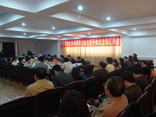 5月16日,省教育廳副廳長(zhǎng)趙敏和以省學(xué)位委員會(huì)副主任委員吳林教授為組長(zhǎng)的9位專家組成的黑龍江省新增博士學(xué)位授予單位立項(xiàng)評(píng)估專家組及省學(xué)位辦劉雪松處長(zhǎng)、李傳威副處長(zhǎng)等蒞臨我校,對(duì)我校申報(bào)新增博士學(xué)位授予單位立項(xiàng)進(jìn)行了評(píng)估。校領(lǐng)導(dǎo)陳承貴、唱江華、王鳳琴、張學(xué)軍、曲偉建、姜守訓(xùn)、張忠恒、鄭喜群、鄧啟剛、呂曉輝等出席匯報(bào)會(huì)并與專家組交換了意見(jiàn);我校研究生處、科研處等職能部門負(fù)責(zé)人、各有關(guān)學(xué)院負(fù)責(zé)人、學(xué)科帶頭人等參加了匯報(bào)與座談會(huì)。