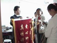 市商業(yè)銀行有關(guān)領(lǐng)導通過媒體得知此情況后,予以高度重視。工會主席宣莉通過商行網(wǎng)發(fā)動全行職工自發(fā)捐款,廣大職工積極響應,慷慨解囊,奉獻愛心,全行上下一點一滴的捐款很快就匯成了愛的暖流。6月6日上午,宣莉等一行帶著商業(yè)銀行全體員工的愛心將他們自發(fā)捐助的7000元錢交到了王露藝手中,勉勵她好好學習,與母親共渡難關(guān),并祝王露藝的母親早日康復。同時,宣莉代表捐助單位填寫了愛心捐助卡。王露藝母女將繡有“愛心助學子 真情譜新篇”的錦旗贈給商行員工,并請宣麗等轉(zhuǎn)達她們母女的感激之情,決心戰(zhàn)勝困難,努力成才,用實際行動回報學校和社會的關(guān)愛。