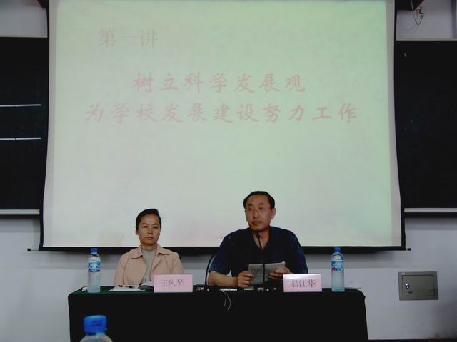 在題為“樹立科學(xué)發(fā)展觀,為學(xué)校發(fā)展建設(shè)努力工作”的講座中,他重點(diǎn)闡述了三個(gè)方面的內(nèi)容:一是關(guān)于貫徹落實(shí)科學(xué)發(fā)展觀的問題。他援引溫家寶總理的有關(guān)論述,結(jié)合國際、國內(nèi)和學(xué)校的發(fā)展背景,深刻闡述了科學(xué)發(fā)展觀“五個(gè)統(tǒng)籌、六個(gè)統(tǒng)一”的重要內(nèi)涵,強(qiáng)調(diào)“發(fā)展是硬道理”,發(fā)展要堅(jiān)持“以人為本”。二是關(guān)于構(gòu)建和諧社會(huì)的問題。他從和諧社會(huì)的科學(xué)內(nèi)涵入手,條分縷析地闡述了黨和國家做出構(gòu)建社會(huì)主義和諧社會(huì)的重大戰(zhàn)略決策的重要意義;他理論聯(lián)系實(shí)際,生動(dòng)地闡述了在構(gòu)建和諧社會(huì)的宏觀背景下構(gòu)建和諧校園的重要性。三是關(guān)于學(xué)校貫徹落實(shí)科學(xué)發(fā)展觀、實(shí)現(xiàn)學(xué)校在新世紀(jì)的科學(xué)發(fā)展的問題。他以科學(xué)發(fā)展觀為指導(dǎo),堅(jiān)持實(shí)事求是、與時(shí)俱進(jìn),從國家實(shí)施科教興國戰(zhàn)略和我省推進(jìn)科教興省戰(zhàn)略,加快東北老工業(yè)基地振興的宏觀背景著眼,從學(xué)校的發(fā)展歷史、現(xiàn)狀和發(fā)展趨勢(shì)入手,重點(diǎn)突出地闡述了學(xué)校未來發(fā)展特別是“十一五”期間的戰(zhàn)略構(gòu)想,對(duì)學(xué)校發(fā)展的辦學(xué)指導(dǎo)思想、辦學(xué)定位、發(fā)展目標(biāo)、主要措施等方面做了客觀、辯證地分析和說明;對(duì)學(xué)校迎接2007年教育部本科教學(xué)水平評(píng)估有關(guān)情況做了闡述,并要求各部門、各單位在加強(qiáng)硬件建設(shè)的同時(shí)重點(diǎn)加強(qiáng)軟件建設(shè),強(qiáng)化各方面的管理工作,確?!氨A紶巸?yōu)”目標(biāo)的如期實(shí)現(xiàn)。最后,他強(qiáng)調(diào),學(xué)校正處于非常重要的發(fā)展機(jī)遇期。他號(hào)召肩負(fù)著學(xué)校未來發(fā)展任務(wù)的廣大領(lǐng)導(dǎo)干部要團(tuán)結(jié)起來,組織和帶領(lǐng)全體師生員工,為學(xué)校的發(fā)展而努力奮斗! 黨委副書記王鳳琴最后對(duì)本次講座進(jìn)行了總結(jié)。她指出,唱江華校長所作的以貫徹落實(shí)科學(xué)發(fā)展觀、構(gòu)建社會(huì)主義和諧社會(huì)、推進(jìn)學(xué)校改革發(fā)展為主要內(nèi)容的報(bào)告,既有理論研究和思考,也有對(duì)我們學(xué)校工作和發(fā)展的科學(xué)分析。報(bào)告是對(duì)我校發(fā)展的一次情況通報(bào),是對(duì)我校辦學(xué)指導(dǎo)思想、發(fā)展定位、學(xué)校發(fā)展所面臨的形勢(shì)和任務(wù)的科學(xué)分析,特別是對(duì)學(xué)校廣大干部責(zé)任意識(shí)一次強(qiáng)化。報(bào)告對(duì)我們學(xué)校當(dāng)前和今后一個(gè)時(shí)期的重點(diǎn)工作、努力方向的做了明確,是一次動(dòng)員和部署,對(duì)下一步開展工作具有很強(qiáng)的指導(dǎo)意義。她要求各級(jí)基層黨委、黨總支、直屬黨支部,要按照校委關(guān)于培訓(xùn)班的學(xué)習(xí)要求,理論聯(lián)系實(shí)際地展開討論,并形成討論總結(jié)材料上報(bào)學(xué)校有關(guān)部門。最后,他要求,全校處級(jí)領(lǐng)導(dǎo)干部要按照學(xué)校黨委關(guān)于培訓(xùn)班的要求做,按照唱江華校長動(dòng)員報(bào)告的要求做,以飽滿的精神狀態(tài)、嚴(yán)謹(jǐn)?shù)膶W(xué)風(fēng)、充沛的精力投入到培訓(xùn)學(xué)習(xí)中來,努力提高素質(zhì),很好地完成培訓(xùn)任務(wù)。 這次培訓(xùn)班內(nèi)容豐富,安排了6次集中培訓(xùn),學(xué)校領(lǐng)導(dǎo)將就提高自身素質(zhì),樹立科學(xué)發(fā)展觀,加強(qiáng)中層領(lǐng)導(dǎo)班子民主集中制建設(shè)等問題進(jìn)行專題講座;聘請(qǐng)齊齊哈爾市人民檢察院檢察長紀(jì)少全同志做題為“錘煉人格、鍛造官德”的輔導(dǎo)報(bào)告;還安排了觀看《人民的好公仆—牛玉儒先進(jìn)事跡》錄像片以及警示教育和自學(xué)、討論等內(nèi)容。培訓(xùn)班歷時(shí)半個(gè)月,將于6月22日結(jié)束。