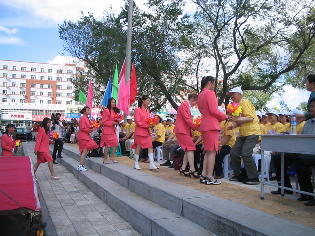 新老交流中薪火相傳。參加此次廣場文藝演出的離退休黨員100余名,其中年齡最高者已達82歲;部分老黨員曾親身參加過抗日戰(zhàn)爭、解放戰(zhàn)爭和抗美援朝戰(zhàn)爭,為國家的獨立、人民的解放和世界的和平建立了功勛;在和平建設(shè)時期,他們又為學(xué)校的創(chuàng)建、改革與發(fā)展做出了貢獻。在文藝演出前。人文學(xué)院的學(xué)生代表為他們敬獻了鮮 花,表達了當(dāng)代大學(xué)生對老一輩革命者的崇高敬意;離退休老黨員劉吉平也在演出中寄語青年學(xué)子要“努力學(xué)習(xí),創(chuàng)出佳績,為學(xué)校、為家庭爭光!”,表達了老一輩對青年大學(xué)生的殷切希望。