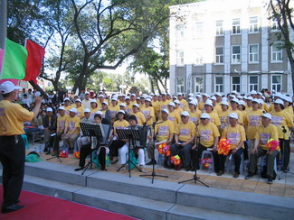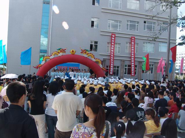 6月10日下午,我校人文樓東側(cè)的校園廣場彩旗招展,樂曲悠揚,“六十載江橋鴿駐老驥心騏放歌激情歲月,半世紀濱湖鶴翔芳桃李艷傳薪和諧中國”的條幅在夏日陽光下鮮明醒目,人文學(xué)院與離退休工作處聯(lián)合 “共建和諧校園 同創(chuàng)美好明天”的大型廣場文藝演出隆重舉行,校領(lǐng)導(dǎo)唱江華、王鳳琴、姜守訓(xùn)、張忠恒、鄭喜群等出席,離退休老干部合唱團及校黨委組織部、宣傳部、離退休工作處、校團委等部門有關(guān)負責(zé)人和人文學(xué)院黨政領(lǐng)導(dǎo)、師生等歡聚激情廣場,傾情歌唱。