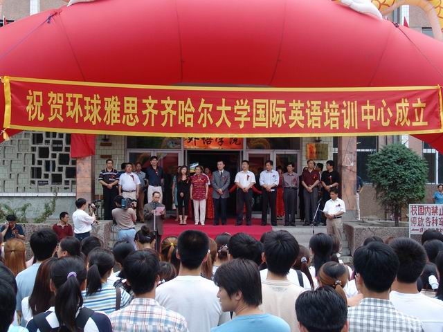 校長唱江華教授在成立大會暨揭牌儀式上發(fā)表了熱情洋溢的致詞,他首先代表學(xué)校對各界人士的蒞臨表示衷心地感謝和熱烈歡迎,對環(huán)球雅思國際英語培訓(xùn)中心落戶鶴城表示祝賀!他指出,在改革開放不斷深入,國際交流進(jìn)一步擴(kuò)大的今天,環(huán)球雅思國際英語培訓(xùn)中心落戶鶴城,將為我校學(xué)生及齊齊哈爾市有識之士提供了更為廣闊的學(xué)習(xí)英語的途徑。他預(yù)祝,環(huán)球雅思齊齊哈爾大學(xué)國際英語培訓(xùn)中心將辦得更有特色,更有成效,為齊齊哈爾市與海內(nèi)外的交流合作,促進(jìn)經(jīng)濟(jì)社會發(fā)展發(fā)揮重要的作用。他表示,我校將努力為環(huán)球雅思國際英語培訓(xùn)中心提供寬松的環(huán)境和空間。他相信,經(jīng)過各方的共同努力,雅思齊齊哈爾大學(xué)國際英語培訓(xùn)中心一定會辦成高水平的國際英語培訓(xùn)中心,最后,他再一次向?yàn)楸敬位顒?dòng)的成功舉辦給予大力支持并付出辛勤努力的各有關(guān)單位表示衷心感謝并鄭重宣布:環(huán)球雅思國際英語培訓(xùn)中心正式成立!