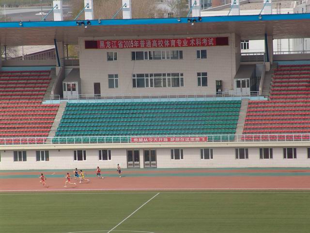 5月11日,大學(xué)西區(qū)校園彩旗飄揚(yáng),2005年黑龍江省普通高校體育專業(yè)招生術(shù)科統(tǒng)一測(cè)試在我校西區(qū)體育場(chǎng)開始進(jìn)行。
