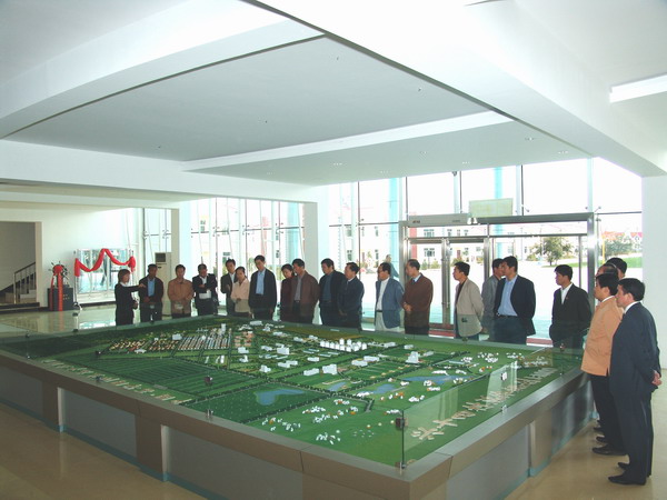 在興十四村,校領(lǐng)導(dǎo)們首先參觀了村史展覽館,觀看了見證興十四村50年發(fā)展歷程的珍貴圖片和大量實(shí)物,興十四村是1956年在一片荒原上建立的山東移民村,地處偏遠(yuǎn)內(nèi)陸,不靠水、不靠山、不靠城,交通不便,土地貧瘠,但是在村黨總支書記付華廷的帶領(lǐng)下,卻發(fā)生了翻天覆地的變化,由住馬架子、吃救濟(jì)糧的貧窮落后村變成了全國先進(jìn)性、富裕村,成為全省小康第一村。2002年,興十四村組建了富華集團(tuán)并成功上市。到2004年底,興十四村已擁有33家企業(yè),固定資產(chǎn)9個(gè)億,人均收入1.3萬元,實(shí)現(xiàn)了農(nóng)業(yè)現(xiàn)代化、農(nóng)區(qū)工業(yè)化、農(nóng)村城鎮(zhèn)化和農(nóng)宅別墅化。在離開展覽館的時(shí)候,校長唱江華應(yīng)邀為村史展覽館題詞“學(xué)習(xí)興十四精神,走創(chuàng)業(yè)發(fā)展之路”。