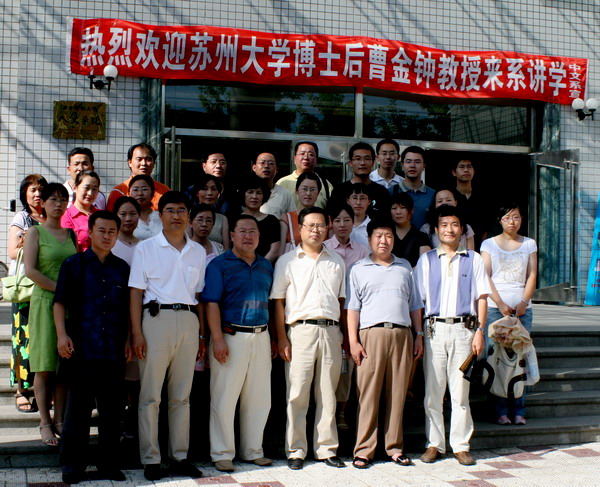 7月13日下午2:10,我校人文樓204階梯教室濟(jì)濟(jì)一堂,蘇州大學(xué)博士后曹金鐘教授應(yīng)人文學(xué)院中文系盛邀,來校為師生講學(xué),人文學(xué)院中文系300名師生聆聽了講座。