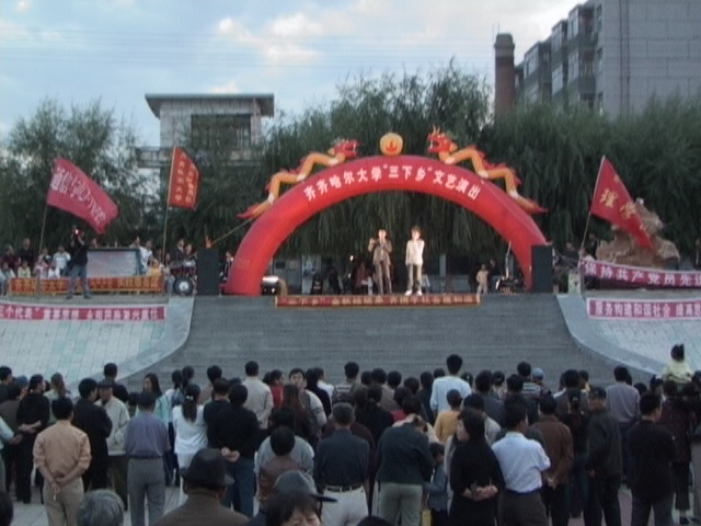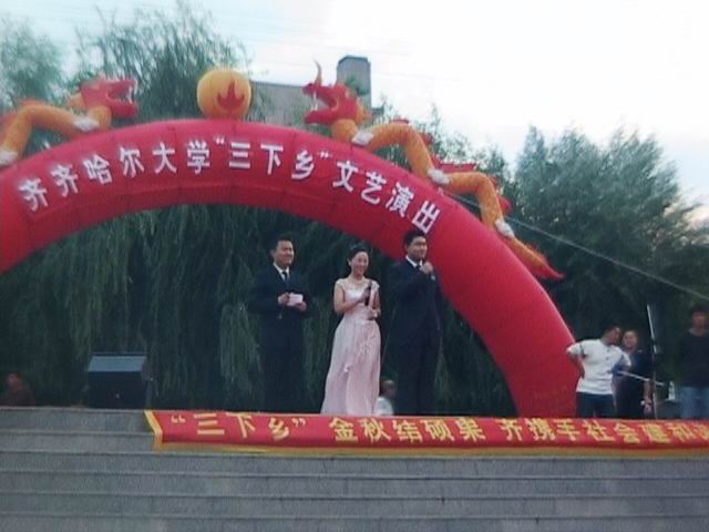 9月5日上午,社會(huì)實(shí)踐服務(wù)團(tuán)師生不顧一路顛簸勞累,在到達(dá)泰來縣江橋鎮(zhèn)后即在江橋鎮(zhèn)馬占山抗日紀(jì)念公園舉行了“緬懷先烈,牢記歷史”愛國主義主題教育活動(dòng),聽取了王東升老同志的關(guān)于江橋抗戰(zhàn)革命歷史知識(shí)介紹。齊齊哈爾市關(guān)工委副主任崔文杰、察廣信、甘文耀,泰來縣縣委副書記郭宇航、副縣長(zhǎng)馬志海、團(tuán)縣委書記劉立偉、江橋鎮(zhèn)鎮(zhèn)長(zhǎng)李洪宇等出席活動(dòng);同時(shí),社會(huì)服務(wù)團(tuán)資助了泰來縣江橋鎮(zhèn)中學(xué)5名貧困學(xué)生,為江橋鎮(zhèn)捐贈(zèng)衣物600余件;開展了義診并贈(zèng)送藥品。晚18:30,社會(huì)實(shí)踐服務(wù)團(tuán)師生在泰來縣中心廣場(chǎng)開展“再攜手,共建和諧”大型廣場(chǎng)文藝演出。泰來縣委、縣人大、縣政府、縣政協(xié)及相關(guān)部門領(lǐng)導(dǎo)和社會(huì)各界群眾千余人觀看了精彩的文藝演出。我校大學(xué)生社會(huì)實(shí)踐服務(wù)團(tuán)成員與泰來縣群眾一起同臺(tái)表演,活躍了氣氛,增進(jìn)了友誼。我校學(xué)生表演的歌曲《跟黨走》、舞蹈《月光下的鳳尾竹》等精彩的文藝節(jié)目博得了現(xiàn)場(chǎng)的泰來縣廣大人民群眾的熱烈掌聲。熱情洋溢的掌聲,進(jìn)一步激發(fā)了廣大同學(xué)更好地開展“三下鄉(xiāng)”活動(dòng)的信心;人民群眾的鼓勵(lì),更加堅(jiān)定了同學(xué)們踐行“三個(gè)代表”重要思想的決心。