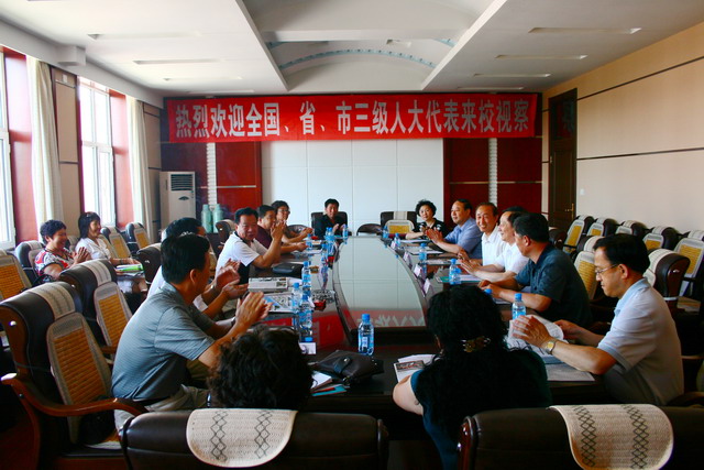 我校領(lǐng)導(dǎo)與來(lái)校的各級(jí)人大代表在機(jī)關(guān)行政樓5樓會(huì)議室進(jìn)行了座談。校長(zhǎng)唱江華向各位代表介紹了學(xué)校的基本情況,會(huì)后代表們?cè)趯W(xué)校領(lǐng)導(dǎo)的陪同下參觀了我校化工實(shí)驗(yàn)室、計(jì)算中心、圖書館、網(wǎng)絡(luò)中心、體育館、游泳館等場(chǎng)所。