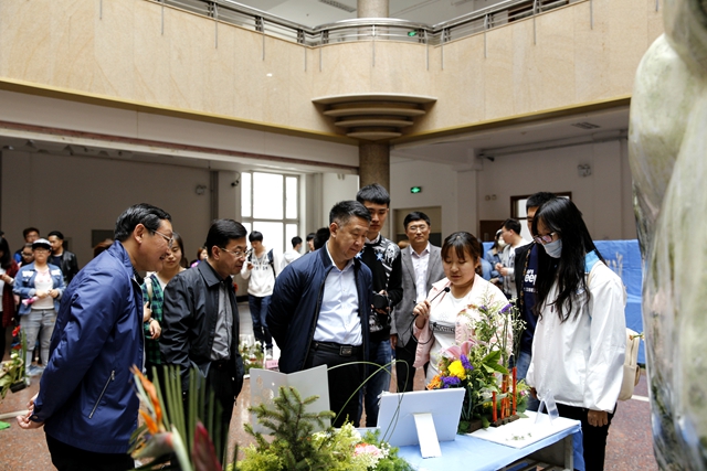 校長馬立群,校黨委副書記蓋元臣,校黨委常委、副校長李英杰到現(xiàn)場觀看作品,聽取參賽學生關于插花作品創(chuàng)意的說明,并給予了點贊和鼓勵。學校辦公室、黨委宣傳統(tǒng)戰(zhàn)部、學生工作部(學生處)、實踐教學與設備管理中心、校團委,生命科學與農林學院等部門(學院)領導、園林系師生等觀看了比賽。