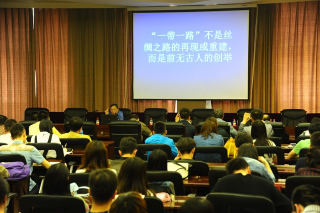 葛劍雄教授基于歷史地理背景視角,深入淺出地闡述了“一帶一路”戰(zhàn)略的歷史淵源、現(xiàn)實(shí)背景,并對(duì)未來發(fā)展提出了學(xué)者的思考,以大家學(xué)者的睿智思維與開闊的學(xué)術(shù)視野高屋建瓴又深入淺出地闡釋了“一帶一路”戰(zhàn)略的有關(guān)問題,語言生動(dòng)幽默,邏輯脈絡(luò)清晰,讓與會(huì)師生既獲得學(xué)理啟思,又近距離領(lǐng)略名家學(xué)者風(fēng)采,獲益良多。
