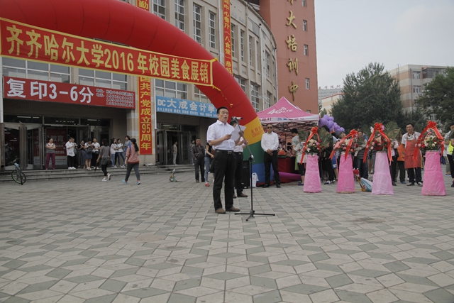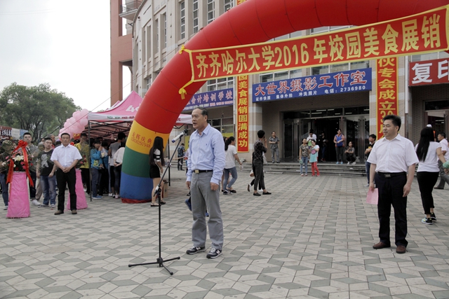 學校黨委常委、副校長王剛宣布:“齊齊哈爾大學2016年校園美食展銷活動啟動!”