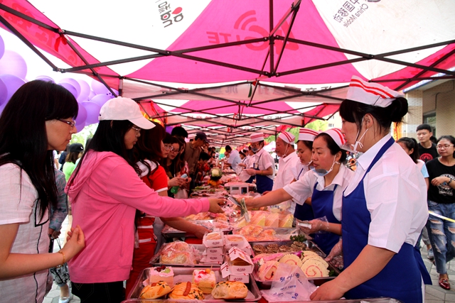 本次美食展銷活動以“品味健康美食 感受親情服務(wù)”為主題,是一次以弘揚餐飲文化為主,注重創(chuàng)新,將飲食文化與服務(wù)管理有機結(jié)合的活動,共設(shè)置2個展區(qū)。購物中心廣場為美食展區(qū),主要展出由8個學生食堂加工制作的代表齊大伙食特色品牌的300多種主副食品,包括傳統(tǒng)糕點、西式甜點、特色面食、熏醬副食、自助烤全羊等精品美食。