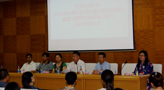 校長馬立群在2016年中青年教師講課比賽頒獎(jiǎng)典禮暨第三期青年教師崗位能力培訓(xùn)班結(jié)業(yè)式上發(fā)表重要講話。他指出,齊齊哈爾大學(xué)走過60余年的辦學(xué)歷程,為共和國培養(yǎng)了大批的優(yōu)秀人才,做出了重要貢獻(xiàn),在新世紀(jì)抓住機(jī)遇,實(shí)現(xiàn)了跨越式發(fā)展。建設(shè)高水平大學(xué)之路,與每一位教師的專業(yè)素質(zhì)和能力提升息息相關(guān)。青年教師作為齊齊哈爾大學(xué)未來教學(xué)與科研發(fā)展的重要力量,要盡早構(gòu)建科學(xué)的教育哲學(xué)觀。只有把教育哲學(xué)問題解決好,才能解決好心態(tài)、觀念、態(tài)度等方面的問題,才能在教學(xué)中探索出好的教育方法。