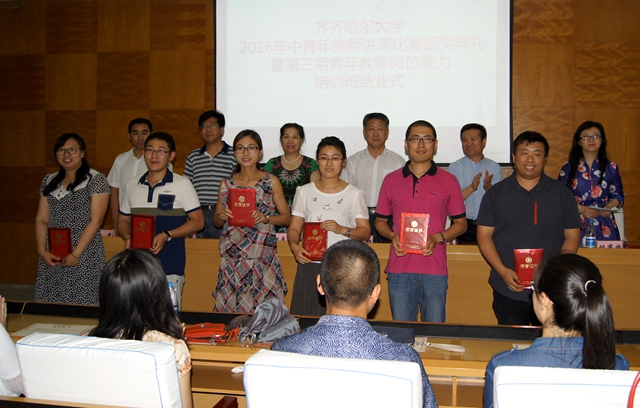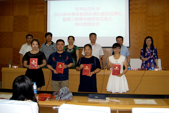 7月6日下午,2016年中青年教師講課比賽頒獎(jiǎng)典禮暨第三期青年教師崗位能力培訓(xùn)班結(jié)業(yè)式在西主學(xué)術(shù)報(bào)告廳舉行,校長馬立群,副校長李英杰出席頒獎(jiǎng)典禮暨第三期青年教師崗位能力培訓(xùn)班結(jié)業(yè)式,學(xué)校工會(huì)副主席李迎春、教學(xué)實(shí)驗(yàn)設(shè)備管理中心主任馬文輝、教務(wù)處副處長祝光及第三期青年教師崗位能力培訓(xùn)班學(xué)員參加了此次活動(dòng)。會(huì)議由高教研究與教學(xué)質(zhì)量評估中心主任劉省非主持。