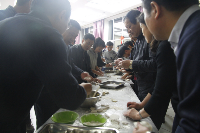 傍晚時(shí)分,華燈初上,中區(qū)食堂熱鬧非凡。以“餃香團(tuán)圓暖冬日 師生情深滿(mǎn)校園”為主題的包餃子活動(dòng)正在這里舉行。學(xué)校領(lǐng)導(dǎo)、相關(guān)職能部門(mén)的領(lǐng)導(dǎo)和各學(xué)院的領(lǐng)導(dǎo)、班主任、輔導(dǎo)員老師,與廣大同學(xué)一起包餃子迎新年。師生們有的揉面,有的搟皮,有的在包,有的在學(xué),歡樂(lè)的氣氛感染著現(xiàn)場(chǎng)的每一個(gè)人,大家紛紛拿出手機(jī),要留下大學(xué)里這一難忘的時(shí)刻。一位2016級(jí)的新生說(shuō),以前都是在家里包餃子迎新年,今年是第一次在學(xué)校食堂集體包餃子,感覺(jué)更有趣,這一定會(huì)成為我們大學(xué)校園生活最美好、最溫暖的回憶。