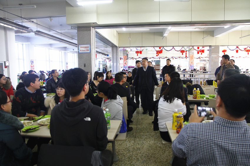 30日中午,校長馬立群,校黨委副書記蓋元臣,校黨委常委、常務(wù)副校長鄭喜群在東區(qū)學(xué)生食堂看望了全體學(xué)工干部和輔導(dǎo)員,并親切合影留念。
