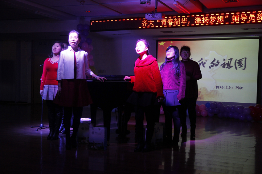 春風(fēng)化雨,我們攜手共育桃李;夏月蟬歌,我們并肩共度風(fēng)雨。各學(xué)院主管學(xué)生工作的領(lǐng)導(dǎo)和輔導(dǎo)員聯(lián)誼聯(lián)歡,載歌載舞,表演了合唱《光陰的故事》、配樂詩朗誦《祝酒歌·齊大學(xué)工頌》、游戲《你比我猜》、魔術(shù)《神奇的輔導(dǎo)員》、詩朗誦《我驕傲——我是齊大輔導(dǎo)員》、游戲《搶椅子》、鋼琴伴奏歌曲聯(lián)唱、三句半《贊輔導(dǎo)員》、舞蹈《咋了,爸爸》以及游戲《貼面?zhèn)鬟f》等,晚會最后以西區(qū)全體輔導(dǎo)員合唱《同一首歌》圓滿結(jié)束。