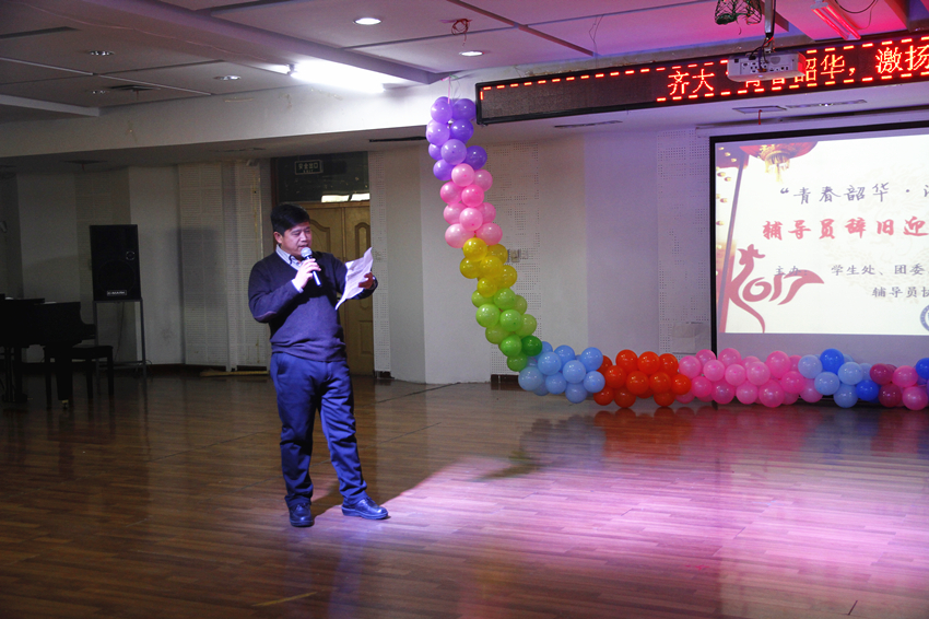 校黨委常委、常務(wù)副校長鄭喜群在聯(lián)歡會上致辭,他說,輔導(dǎo)員是學(xué)校從事思想政治教育、保證校園安全穩(wěn)定的主力軍,是學(xué)生成長成才成人的領(lǐng)路人,在過去的2016年里為學(xué)校建設(shè)、學(xué)生發(fā)展貢獻(xiàn)了力量,希望全體輔導(dǎo)員在2017年里要以習(xí)近平總書記在全國高校思想政治工作會議上的重要講話精神和黨的十八屆六中全會精神為指導(dǎo),多學(xué)習(xí),勤實踐,努力創(chuàng)新工作方法,開拓工作思路,不斷提升自身能力水平,促進(jìn)學(xué)生成長、成才、成人,為高水平大學(xué)建設(shè)做貢獻(xiàn)!他為全體輔導(dǎo)員朗誦了塞繆爾·烏爾曼的經(jīng)典詩歌《年輕》。