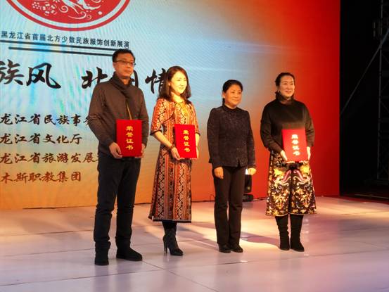 2016年12月29日下午,由黑龍江省民族宗教事務(wù)委員會(huì)、黑龍江省文化廳、黑龍江省旅游發(fā)展委主辦的黑龍江省首屆北方民族服飾創(chuàng)新展演活動(dòng)在哈爾濱華旗飯店501舉行。本次展演的主題為“民族風(fēng) 北國(guó)情”,出席本次展演的領(lǐng)導(dǎo)有黑龍江省政協(xié)副主席洪袁舒,黑龍江省政府副秘書長(zhǎng)王大為,黑龍江省文化廳副廳長(zhǎng)韓慧峰,黑龍江省民委主任劉明,黑龍江省政協(xié)民宗委主任王成國(guó)。同時(shí)來自全省各地的少數(shù)民族干部群眾及設(shè)計(jì)研發(fā)團(tuán)隊(duì)參加了展演活動(dòng)。齊齊哈爾大學(xué)美術(shù)與藝術(shù)設(shè)計(jì)學(xué)院服裝與服飾設(shè)計(jì)系全體教師及參賽學(xué)生參加了此次展演。