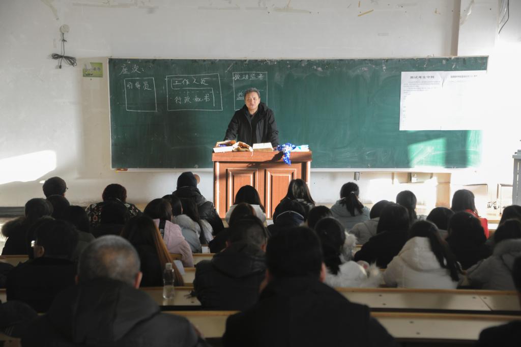 12月28日,在中區(qū)辦公樓504會議室,副校長李英杰帶領(lǐng)領(lǐng)導(dǎo)小組全體成員召開會議,對教師資格面試工作進行了統(tǒng)一部署,各有關(guān)部門也給予了高度重視,在網(wǎng)絡(luò)安裝調(diào)試、遴選考官、新聞宣傳、考場布置、監(jiān)考人員和工作人員安排、紀檢監(jiān)督、安全保衛(wèi)、財務(wù)及后勤保障等各方面積極工作,保證了考試過程秩序井然,給考生提供了良好的考試環(huán)境,贏得了省教育廳和省招生考試院巡視人員的高度認可。