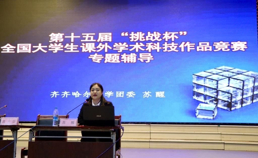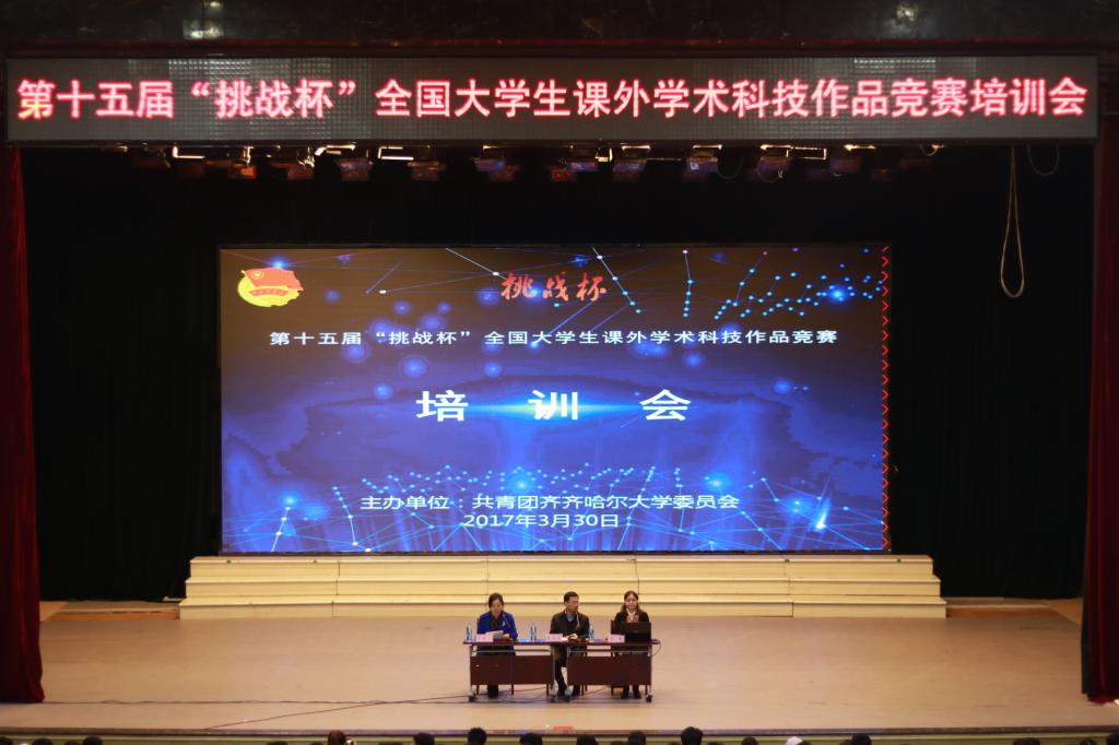 2017年3月30日,我校第十五屆“挑戰(zhàn)杯”全國(guó)大學(xué)生課外學(xué)術(shù)科技作品競(jìng)賽培訓(xùn)會(huì)在文化宮舉行。校黨委副書記蓋元臣、校團(tuán)委副書記蘇醒出席培訓(xùn)會(huì),各學(xué)院主管學(xué)生工作的書記、副書記副院長(zhǎng)、主管教學(xué)工作的副院長(zhǎng)、團(tuán)委書記、指導(dǎo)教師代表、學(xué)生代表,還有來(lái)自齊齊哈爾醫(yī)學(xué)院和齊齊哈爾工程學(xué)院的老師和學(xué)生代表也參加了培訓(xùn)會(huì)。
