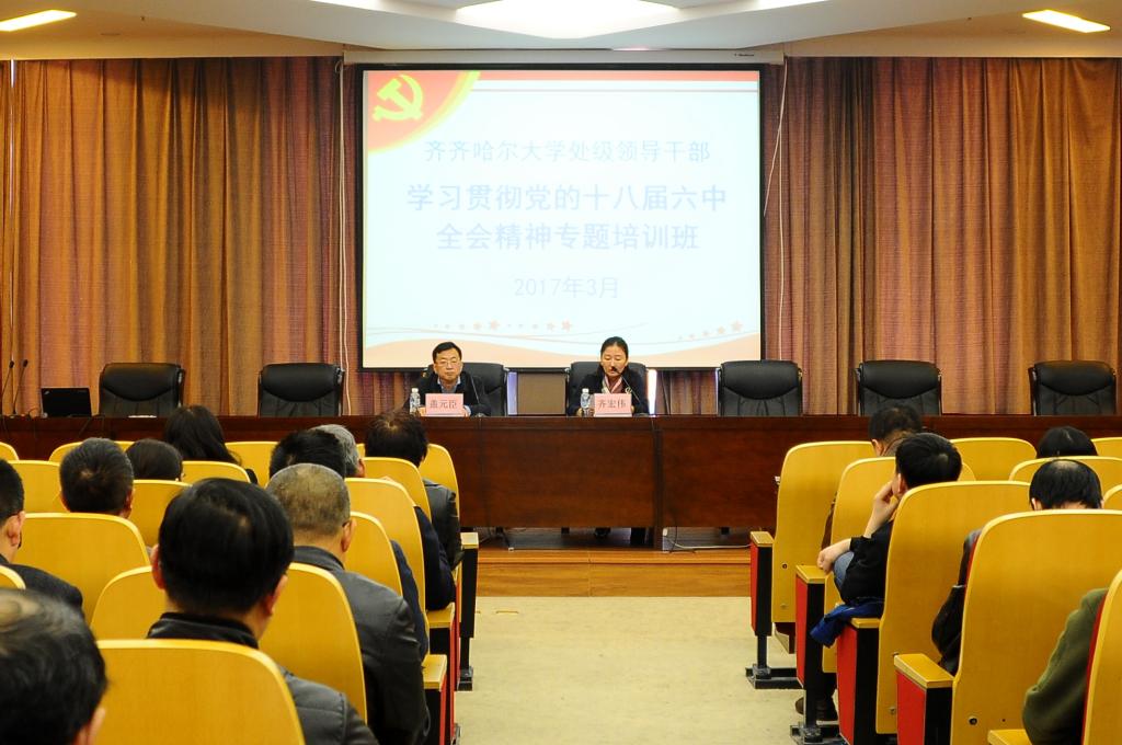 為深入學(xué)習(xí)貫徹習(xí)近平總書(shū)記在黨的十八屆六中全會(huì)和省部級(jí)主要干部專(zhuān)題研討班上的重要講話精神,以及省委書(shū)記王憲魁在全省高校思想政治工作會(huì)議上的講話精神,貫徹落實(shí)《準(zhǔn)則》《條例》,進(jìn)一步落實(shí)黨建主體責(zé)任,增強(qiáng)領(lǐng)導(dǎo)干部“四個(gè)意識(shí)”特別是政治意識(shí)和看齊意識(shí),旗幟鮮明講政治。3月31日上午,我校在德潤(rùn)大廈四樓會(huì)議室舉辦全校處級(jí)領(lǐng)導(dǎo)干部學(xué)習(xí)貫徹黨的十八屆六中全會(huì)精神專(zhuān)題培訓(xùn)班。培訓(xùn)班由校黨委副書(shū)記齊宏偉主持。