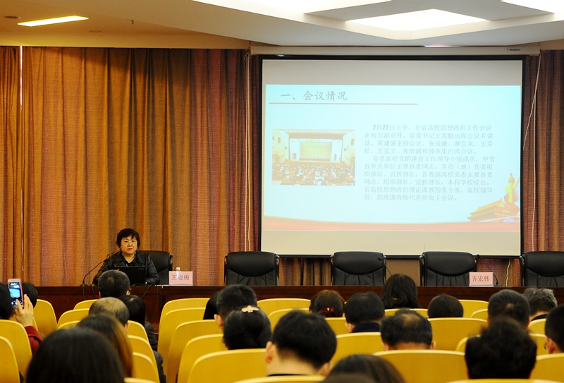 在培訓(xùn)班上,校黨委宣傳統(tǒng)戰(zhàn)部部長(zhǎng)王曉梅從六個(gè)方面解讀了省委書(shū)記王憲魁同志在全省高校思想政治工作會(huì)議上的講話精神:一要堅(jiān)持社會(huì)主義辦學(xué)方向;二要提高學(xué)生思想政治素質(zhì);三要全面提高教師綜合素養(yǎng);四要?jiǎng)?chuàng)新高校思想政治工作方式方法;五要打造過(guò)硬高校思想政治工作隊(duì)伍;六要加強(qiáng)和改善黨對(duì)高校工作的領(lǐng)導(dǎo)。