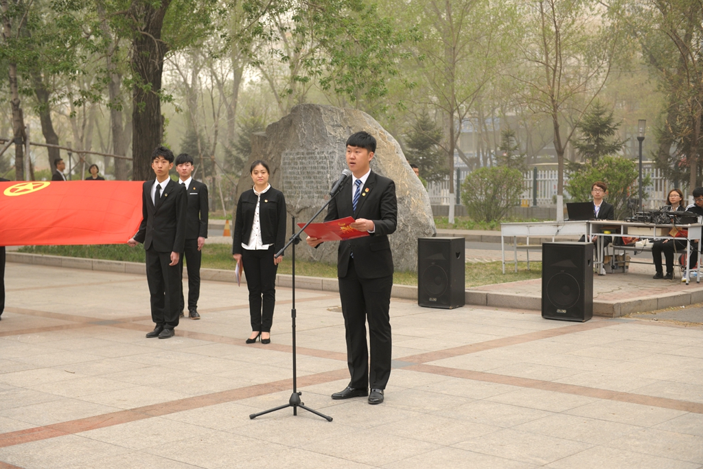 校黨委副書記蓋元臣在升旗儀式上講話。他代表學(xué)校黨委,向全校青年師生致以節(jié)日的祝賀和親切的問候,向在我校共青團戰(zhàn)線上辛勤付出的廣大團干部表示親切的慰問和崇高的敬意,并向全校團員青年提出了三點期望:一要堅定理想信念,樹立高遠(yuǎn)之志。青年人只要把個人的奮斗與祖國的命運聯(lián)系起來,把個人的成功與民族的復(fù)興聯(lián)系起來,才能獲得前進中永恒的動力,才能發(fā)揮個人最大的作用,才能在新時代里成就一番事業(yè);二要堅持發(fā)奮學(xué)習(xí),夯實成才之基。青年既要向書本學(xué)習(xí),又要向?qū)嵺`學(xué)習(xí),要善于創(chuàng)新,善于實踐,在實踐中求得真知,增長才干。要有成才的緊迫感,要為不斷迎接新挑戰(zhàn)打下堅實的基礎(chǔ);三要加強品格修養(yǎng),力行高尚之德。希望廣大團員青年把正確的道德認(rèn)知、自覺的道德養(yǎng)成、積極的道德實踐緊密的結(jié)合起來,自覺地樹立和踐行社會主義核心價值觀,自覺弘揚以愛國主義為核心的民族精神和以改革創(chuàng)新為核心的時代精神,在偉大而富有希望的時代,創(chuàng)造出更加無愧于時代的光輝業(yè)績。最后,他號召全校青年繼承和發(fā)揚共青團的優(yōu)良傳統(tǒng),聽黨的話、跟黨走,用青年人的智慧、勇氣和力量在我校高水平大學(xué)建設(shè)的征途上、在創(chuàng)新創(chuàng)業(yè)的時代大潮中、在實現(xiàn)中華民族偉大復(fù)興中國夢的大路上奮勇前進。