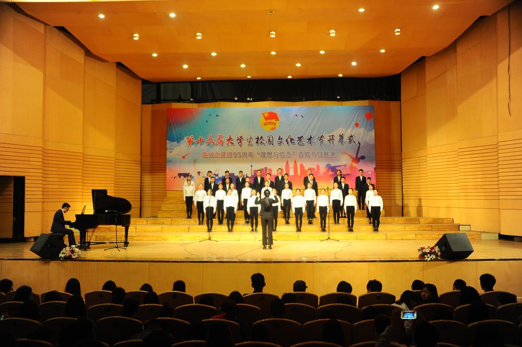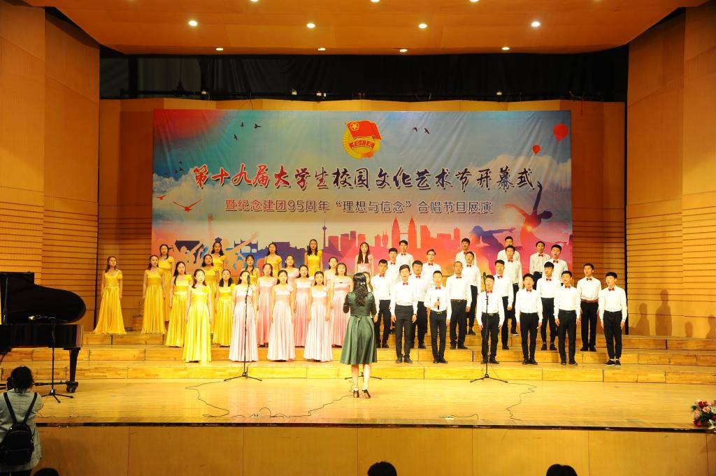 在掌聲與歡呼聲中,紀(jì)念建團(tuán)95周年“理想與信念”合唱節(jié)目展演正式開(kāi)始。