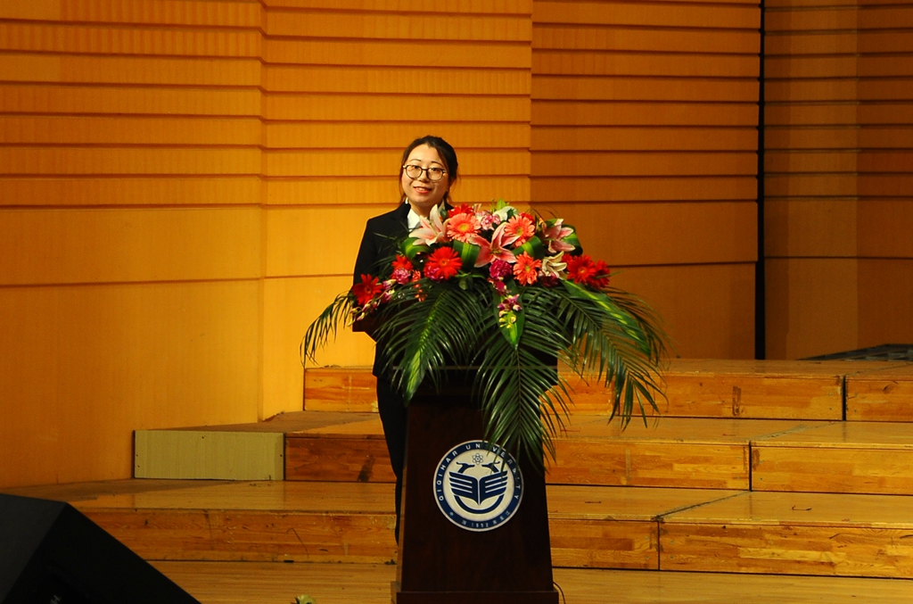 來(lái)自經(jīng)濟(jì)與管理學(xué)院的畢藍(lán)心同學(xué)作為學(xué)生代表在臺(tái)上發(fā)言。