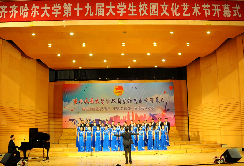 鶯歌燕舞燦若霓裳,楊柳紛飛風(fēng)華絕代。5月10日下午14:30,由校團(tuán)委主辦的齊齊哈爾大學(xué)第十九屆大學(xué)生校園文化藝術(shù)節(jié)開(kāi)幕式暨紀(jì)念建團(tuán)95周年“理想與信念”合唱節(jié)目展演在音樂(lè)廳舉行。校黨委副書(shū)記蓋元臣、常務(wù)副校長(zhǎng)鄭喜群出席,本屆藝術(shù)節(jié)組委會(huì)成員以及各學(xué)院團(tuán)委書(shū)記、學(xué)生代表,各級(jí)學(xué)生組織代表參加了此次活動(dòng)。開(kāi)幕式由校團(tuán)委副書(shū)記蘇醒主持。