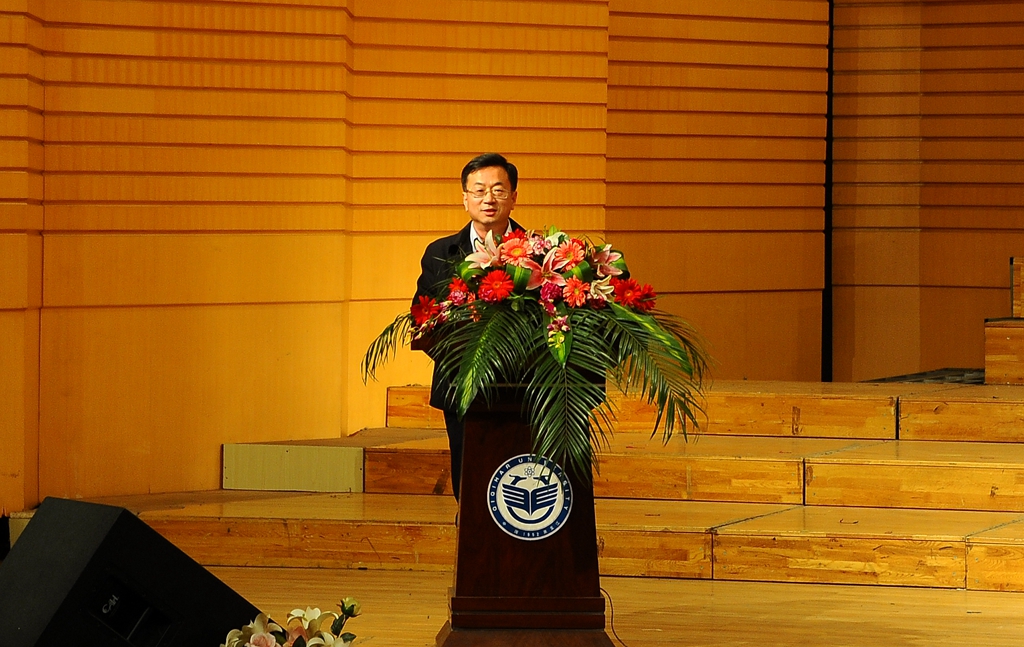 校黨委副書(shū)記蓋元臣致開(kāi)幕詞。他首先向我校第十九屆大學(xué)生校園文化藝術(shù)節(jié)隆重開(kāi)幕表示熱烈的祝賀,并向?yàn)樵O(shè)計(jì)和籌劃此次藝術(shù)節(jié)而付出辛勤汗水的老師和同學(xué)們致以誠(chéng)摯的問(wèn)候和衷心的感謝。他說(shuō),校園文化是學(xué)校發(fā)展的靈魂,是凝聚人心、展示學(xué)校形象、提高學(xué)校文明程度的重要體現(xiàn)。近年來(lái),我校在培育和踐行社會(huì)主義核心價(jià)值觀的道路上,圍繞立德樹(shù)人根本任務(wù),組織開(kāi)展了豐富多彩的校園文化活動(dòng),校園文化產(chǎn)品的數(shù)量巨大,質(zhì)量顯著提高。今年藝術(shù)節(jié)將以全國(guó)第五屆大學(xué)生藝術(shù)展演活動(dòng)為契機(jī),在全校范圍內(nèi)組織開(kāi)展各項(xiàng)藝術(shù)展演活動(dòng),把培育和踐行社會(huì)主義核心價(jià)值觀融入藝術(shù)展演全過(guò)程,大力弘揚(yáng)中華優(yōu)秀傳統(tǒng)文化,培養(yǎng)造就德智體美全面發(fā)展的社會(huì)主義建設(shè)者和接班人。他希望各單位、各部門(mén)、各級(jí)團(tuán)學(xué)組織積極辦好本屆藝術(shù)節(jié),以思想引領(lǐng)為首要任務(wù),以服務(wù)學(xué)生成長(zhǎng)為出發(fā)點(diǎn)和落腳點(diǎn),緊扣時(shí)代主題,不斷創(chuàng)新載體,豐富活動(dòng)內(nèi)容,將此項(xiàng)工作與我校教學(xué)審核評(píng)估工作結(jié)合起來(lái),努力提升學(xué)生參與活動(dòng)的覆蓋面和受眾面,不斷提升校園文化活動(dòng)的層次和水平。