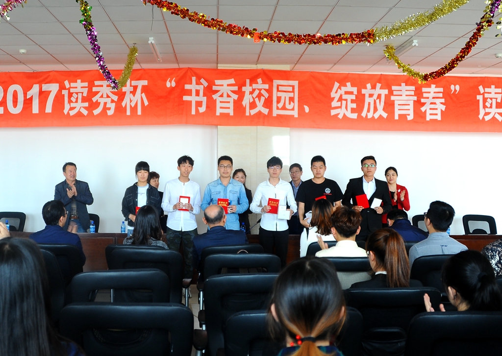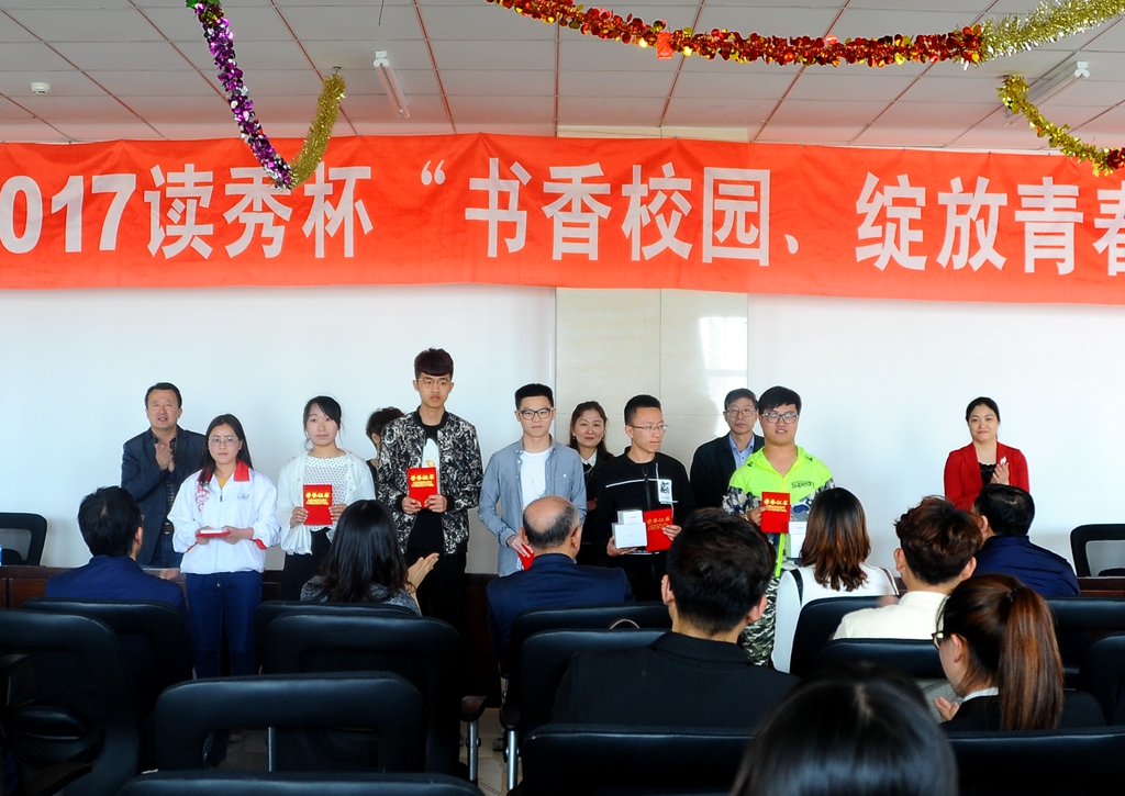 會(huì)上,校團(tuán)委副書記蘇醒宣布了2017世界讀書日活動(dòng)獲獎(jiǎng)名單,其中包括“我最喜愛的圖書”——微書評(píng)、微推薦大賽,名著與書簽——書簽設(shè)計(jì)大賽,朗讀比賽等三項(xiàng)活動(dòng)。