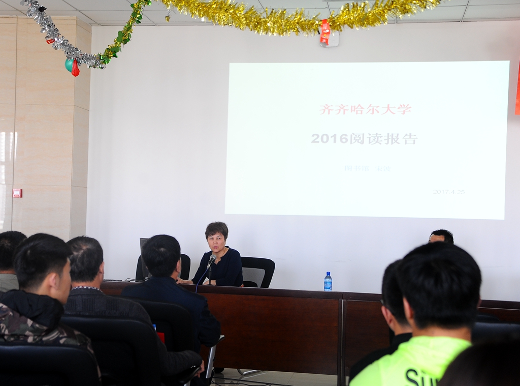 圖書館館長宋波從借閱人次和冊數(shù)、閱讀傾向、年度借閱排行榜等幾部分,對《齊齊哈爾大學(xué)2016年閱讀報(bào)告》(校內(nèi)網(wǎng)鏈接http://xiaonei.qqhru.edu.cn/content.jsp?urltype=news.NewsContentUrl&wbtreeid=1011&wbnewsid=6112)進(jìn)行了詳細(xì)解讀。