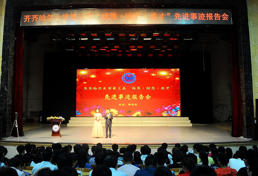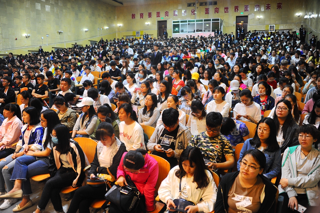 5月19日18時(shí)30分,報(bào)告團(tuán)首場(chǎng)報(bào)告會(huì)在中區(qū)文化宮舉行。常務(wù)副校長(zhǎng)鄭喜群出席了報(bào)告會(huì),學(xué)生工作部(學(xué)生處)部(處)長(zhǎng)姜波、副部(處)長(zhǎng)張樹啟、學(xué)生工作部(學(xué)生處)各科室工作人員及來(lái)自全校10個(gè)學(xué)院共1300余名學(xué)生參加了首場(chǎng)報(bào)告會(huì)。先進(jìn)事跡報(bào)告團(tuán)中化學(xué)與化學(xué)工程學(xué)院王書晴、通信與電子工程學(xué)院佐姍姍、理學(xué)院肖利丹、音樂(lè)與舞蹈學(xué)院時(shí)書航、文學(xué)與歷史文化學(xué)院李睿共五名同學(xué)與大家分享了他們的成長(zhǎng)經(jīng)歷。