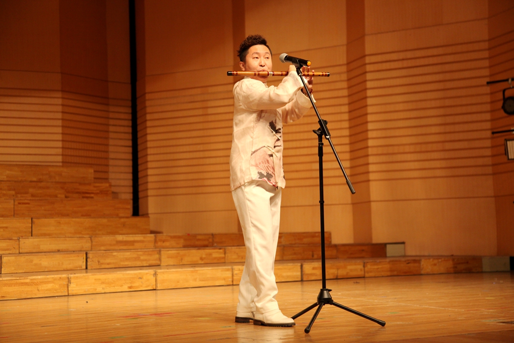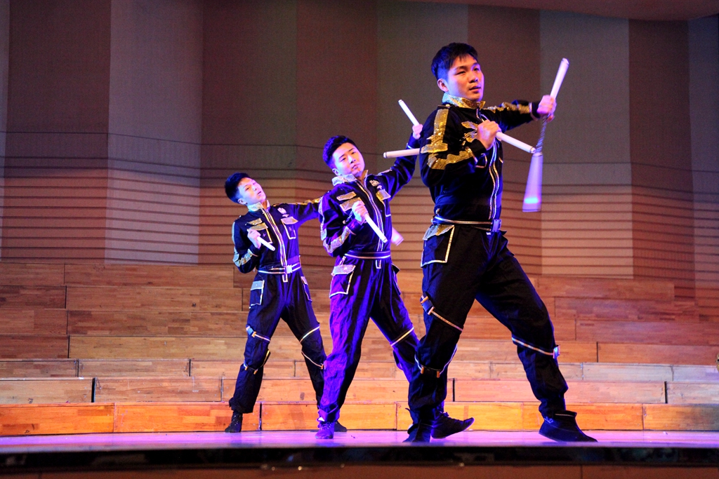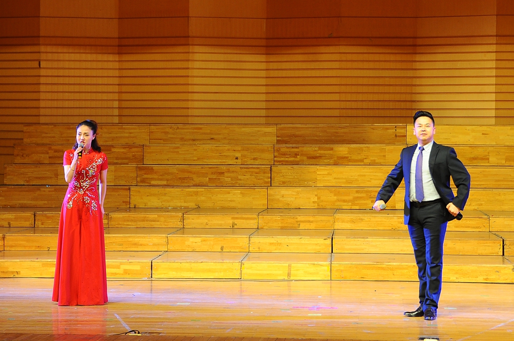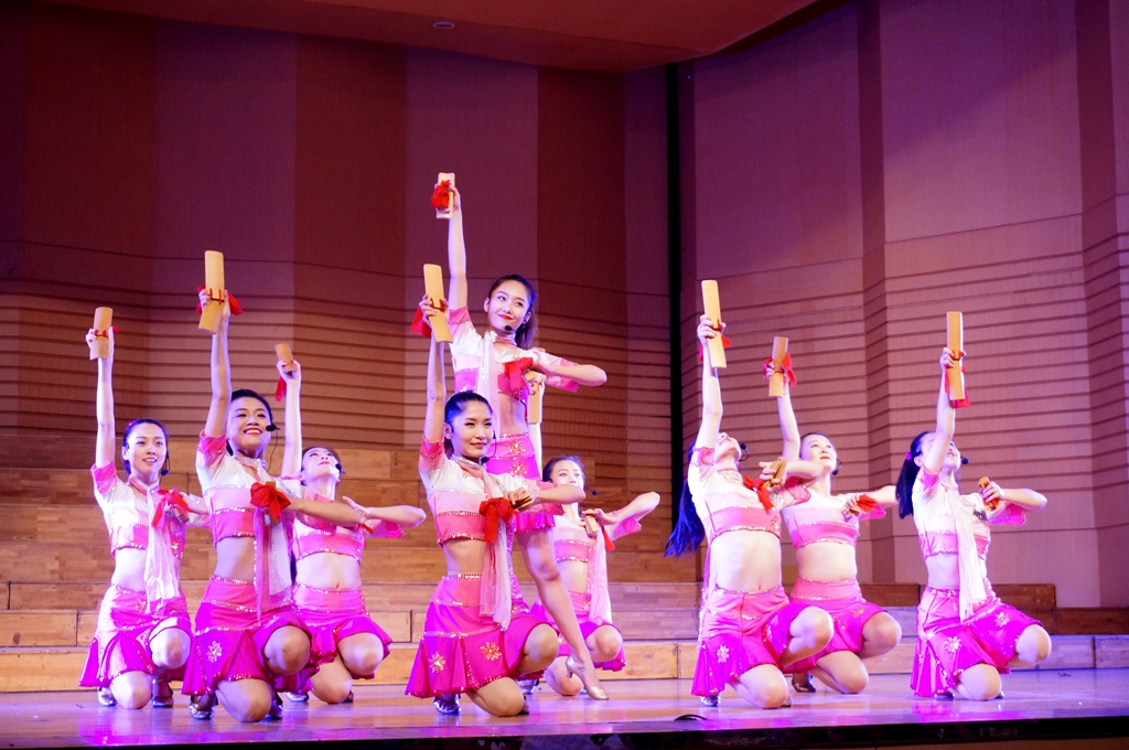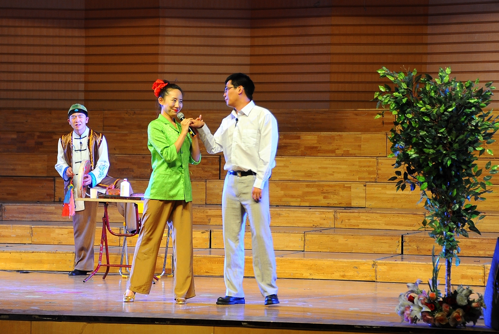 黑龍江省龍江劇藝術中心編排了12個優(yōu)秀的龍江戲劇歌舞節(jié)目。演出在集體舞蹈《冰雪情趣》中拉開了帷幕,龍江少女們精湛的演繹瞬間點燃了全場的熱情;男生獨唱《悟空》、歌舞快板《放飛文明》、龍江劇小品《非誠勿擾》《刨根問底》、女生獨唱《帶我到山頂》、龍江劇戲歌《龍江姑娘火辣辣》等一系列極富地方特色的藝術作品,贏得了在場觀眾的陣陣掌聲;由國家一級演員李雪飛、高運來帶來的經(jīng)典龍江劇選段《講義氣可不能心思太亂》,把臺下觀眾的熱情帶入高潮;笛子獨奏《牧民新歌》、女生獨唱《蘆花》悠揚婉轉(zhuǎn),武功與舞蹈《武林風》一氣呵成、氣勢磅礴;歌舞《共筑中國夢》把現(xiàn)場氣氛推向高潮,贏得在場觀眾雷鳴般的掌聲。師生們沉浸在美妙的樂聲中,久久回味。
