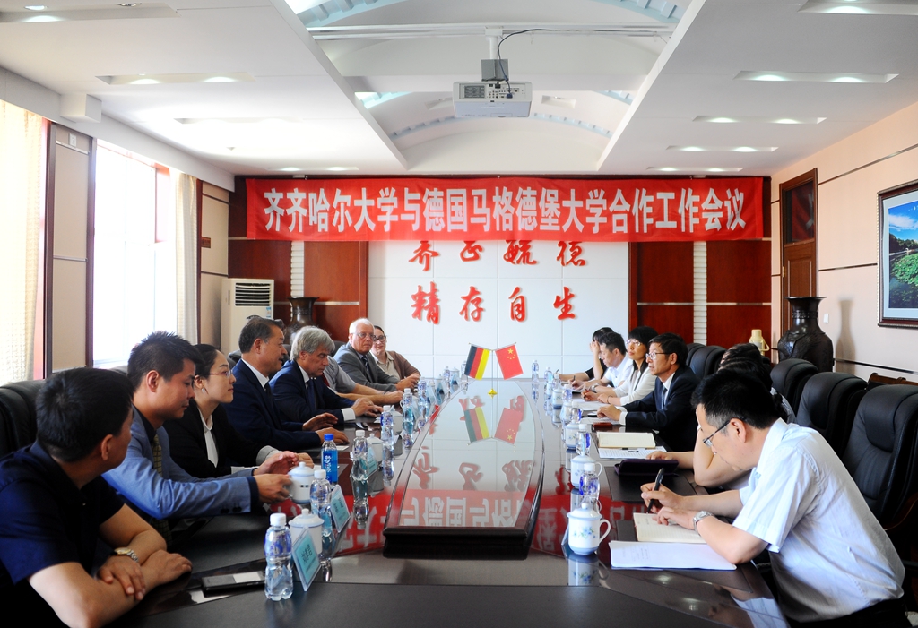 在中區(qū)行政辦公樓504會議室,我校召開齊齊哈爾大學(xué)與德國馬格德堡大學(xué)合作工作會議,副校長張樹軍與來訪的德國客人舉行了會談。我校國際交流合作處處長王中雙、教育與傳媒學(xué)院院長李虹、公共外語教研部主任姚剛,國際交流合作處副處長周麗、副處長盧征,外國語學(xué)院副院長王曉麗等參加了會議。