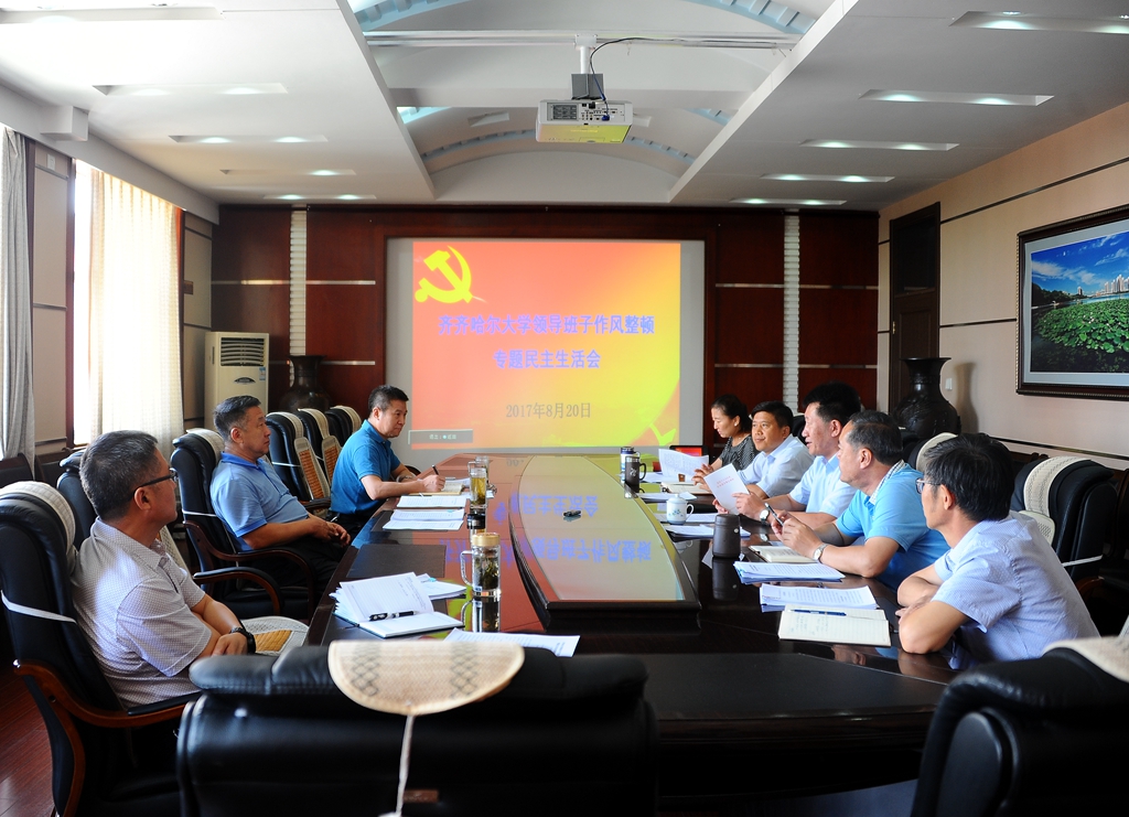 按照省委、省委高校工委關(guān)于全省高校作風(fēng)整頓第二階段工作的相關(guān)要求,根據(jù)《齊齊哈爾大學(xué)領(lǐng)導(dǎo)班子作風(fēng)整頓專題民主生活會方案》的部署和安排,學(xué)校領(lǐng)導(dǎo)班子和班子成員緊扣“學(xué)習(xí)貫徹省十二次黨代會精神,全面加強(qiáng)作風(fēng)建設(shè)”會議主題,通過精心組織學(xué)習(xí)、廣泛征求意見、普遍開展談心、深入查找問題、認(rèn)真撰寫對照檢查材料和黨委書記與班子成員談心談話等會前各項(xiàng)準(zhǔn)備工作,8月20日下午,齊齊哈爾大學(xué)領(lǐng)導(dǎo)班子作風(fēng)整頓專題民主生活會在辦公樓504會議室召開。學(xué)校領(lǐng)導(dǎo)班子成員蘭景力、馬立群、齊宏偉、鄭喜群、王剛、李英杰、姜國慶、張樹軍參加會議。會議由校黨委書記蘭景力主持。