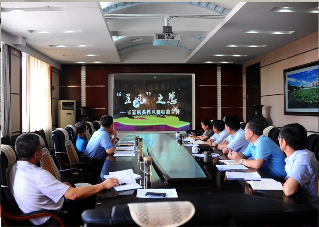 會前,校級領(lǐng)導(dǎo)班子全體成員集中觀看了《“五風(fēng)”之患》省直機(jī)關(guān)作風(fēng)整頓教育片。