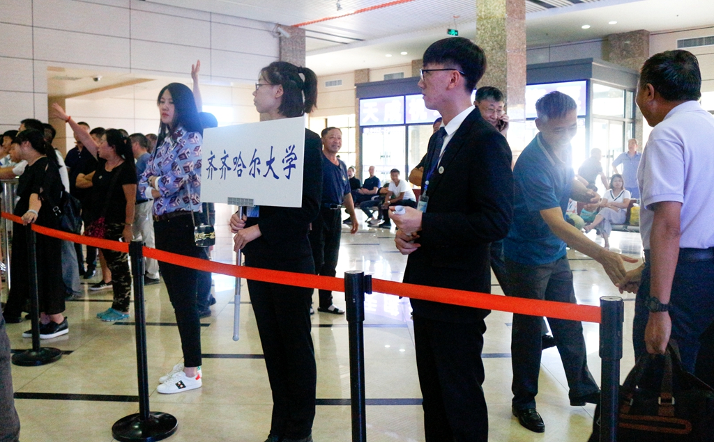 學(xué)校在齊齊哈爾火車站、齊齊哈爾高鐵南站設(shè)立了迎新接站工作點(diǎn),現(xiàn)場(chǎng)工作的有關(guān)領(lǐng)導(dǎo)、老師、學(xué)生社團(tuán)志愿者們打著引導(dǎo)牌、揮舞著旗幟,積極有序地迎接剛剛走下火車的新生同學(xué)及家長(zhǎng),組織大家及時(shí)坐上接站班車,順利抵達(dá)學(xué)校。