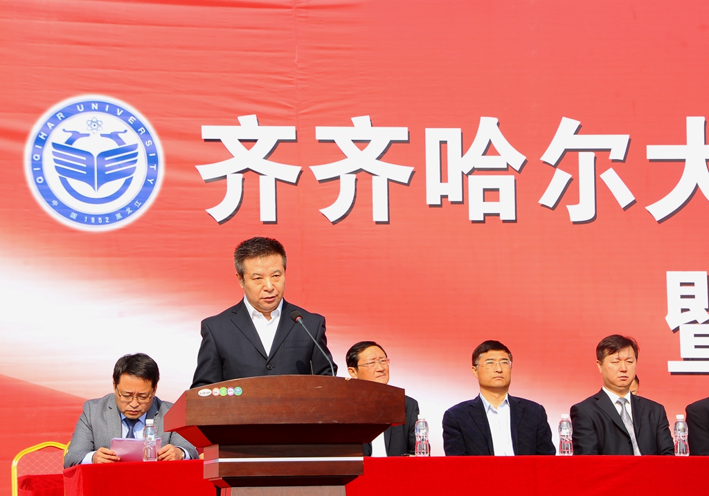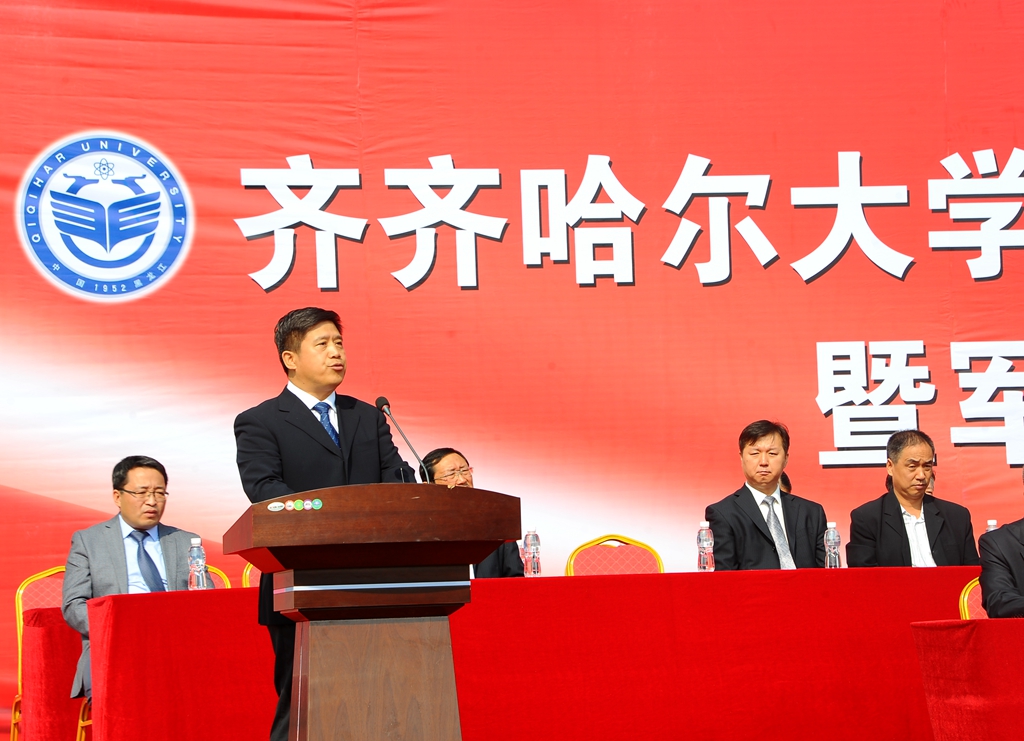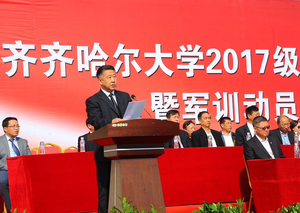 校長(zhǎng)馬立群在大會(huì)上講話。他說(shuō),今天,我們?cè)谶@里隆重舉行2017級(jí)新生開學(xué)典禮暨軍訓(xùn)動(dòng)員大會(huì)。我代表學(xué)校,對(duì)成功考入齊齊哈爾大學(xué)的本科生、研究生表示熱烈的祝賀和誠(chéng)摯的歡迎!向一路支持你們成長(zhǎng)成才、付出辛勤汗水的父母、老師們表示深深的敬意!