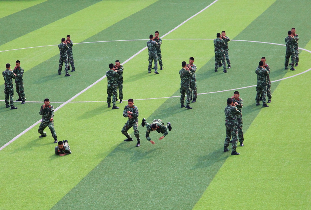 承訓(xùn)部隊教官、武警齊齊哈爾支隊官兵進行軍事技能表演