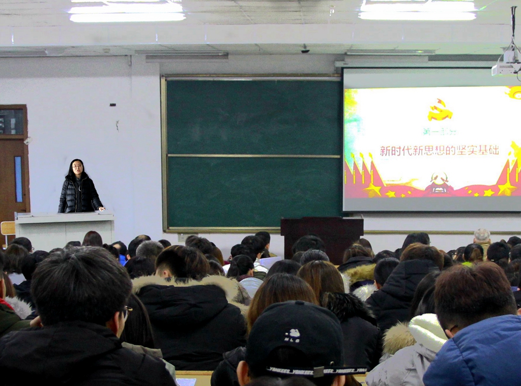 在西區(qū)1教階梯204教室,校黨的十九大精神宣講團(tuán)成員、馬克思主義學(xué)院馬克思主義中國化教研部主任、碩士生導(dǎo)師龐晶副教授以《習(xí)近平新時代中國特色社會主義思想引領(lǐng)新征程》為題,介紹了黨的十九大召開的基本情況,梳理了黨的十八大以來歷次會議的主要議題和內(nèi)容,分析了黨的十九大報告的主題、新時代和新思想的主要內(nèi)容,著重介紹了在習(xí)近平新時代中國特色社會主義思想的引領(lǐng)下如何全面建成小康社會。她指出:中國特色社會主義進(jìn)入了新時代,這是我國發(fā)展新的歷史方位,同時我們黨形成了新時代中國特色社會主義思想。新思想的產(chǎn)生具有重大歷史意義,它將成為決勝全面建成小康社會、奪取新時代中國特色社會主義偉大勝利的行動指南。通信與電子工程學(xué)院、材料科學(xué)與工程學(xué)院全體教職工、學(xué)生黨員及入黨積極分子參加了宣講活動。