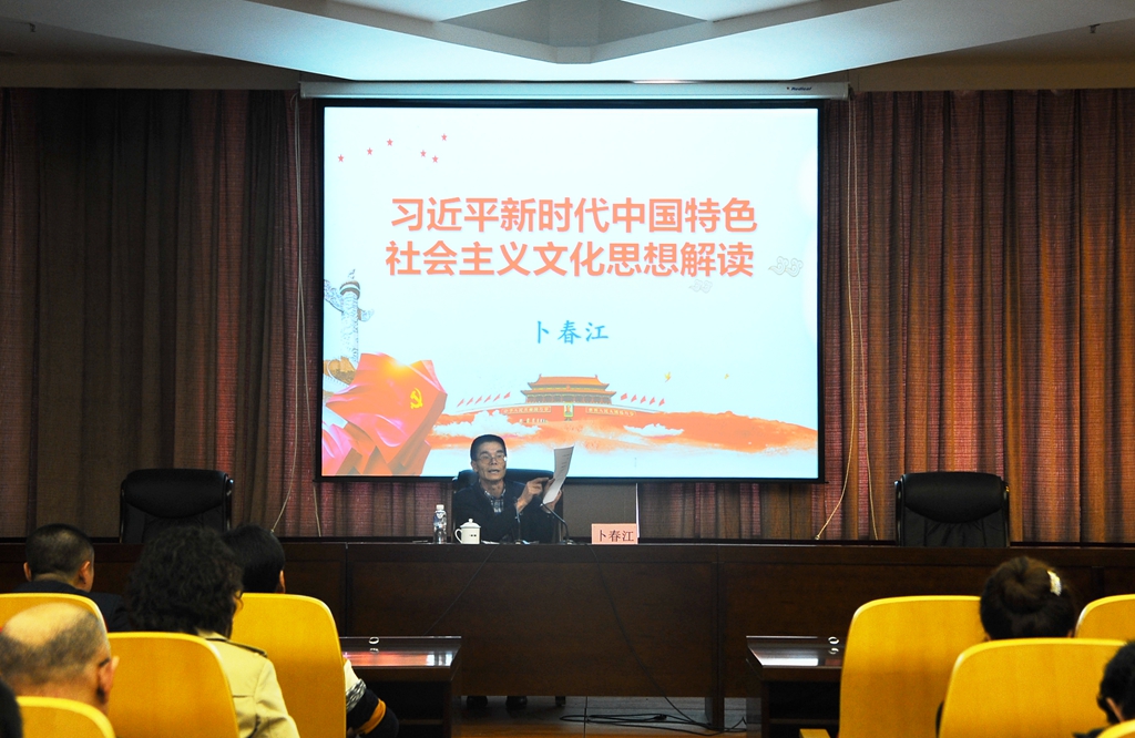 24日下午,哲學與法學學院黨委書記卜春江以《習近平新時代中國特色社會主義文化思想解讀》為題,為輪訓班全體學員帶來了一場專題講座,詳盡闡述了習近平新時代中國特色社會主義文化思想的歷史定位和重大意義、習近平新時代中國特色社會主義文化思想的基本內容、堅持以習近平新時代中國特色社會主義文化思想為指導,建設社會主義文化強國等三個方面的內容。